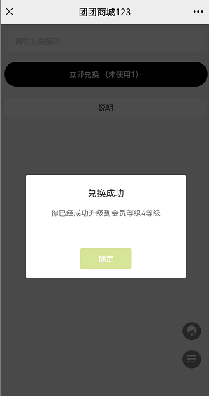 选择等级:兑换后升级到相关的等级(如选择会员等级则会展示会员等级身份)