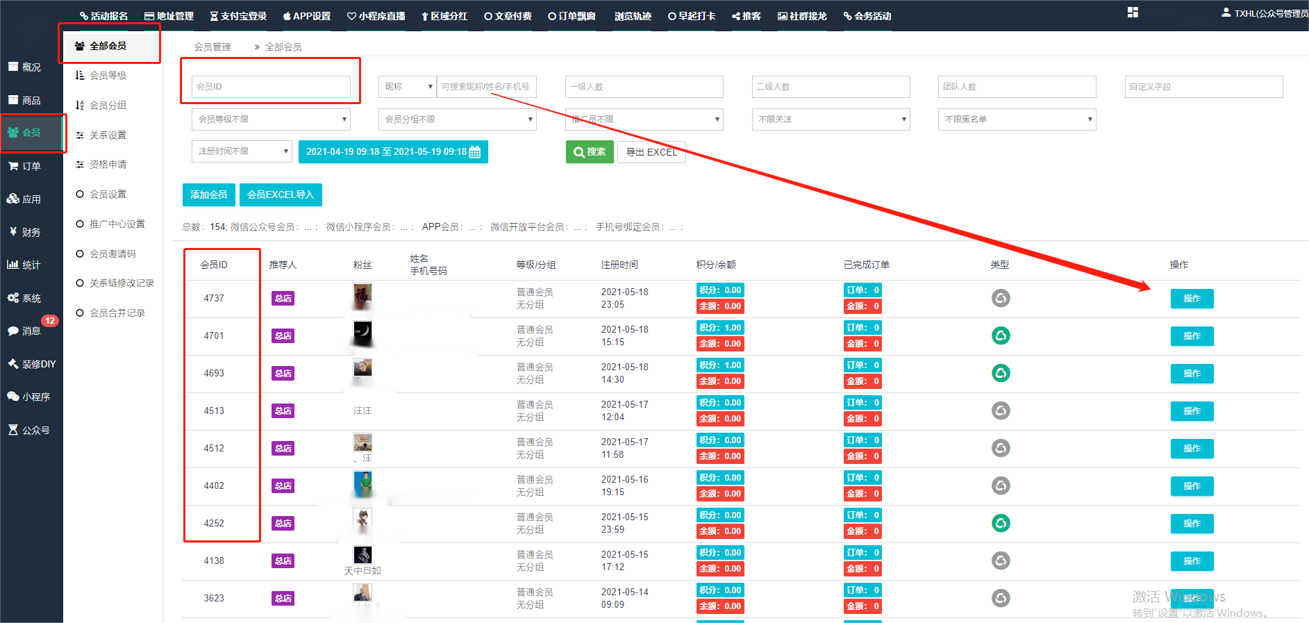 目录 搜索 展开 一、前期准备资料二、数字乡村码-上线操作指南1、服务号的申请流程及认证2、申请小程序流程3、开放平台绑定小程序和公众号三、数字乡村码-系统操作数字乡村码系统管理-概况数字乡村码-商品管理1、发布商品2、商品列表3、商品表单4、商品分类5、品牌管理6、配送模板7、评论管理8、优惠券管理9、商品标签10、退货地址设置11、满额优惠12、批量操作13、配送方式14、基础设置15、商品隐藏四、数字乡村码-会员管理1、全部会员2、会员等级3、会员分组4、资格申请5、会员设置6、推广中心设置7、会员邀请码8、会员关系链修改关系链修改记录9、会员合并记录10、账号注销管理11、会员设置中心五、数字乡村码-订单管理1、订单管理列表2、订单处理流程3、订单状态4、订单修改价格5、订单退款退货6、多包裹发货7、批量发货订单操作步骤8、催发货订单9、物流查询六、数字乡村码-财务管理1、余额设置2、会员余额3、充值记录4、转让记录5、余额明细6、收入明细7、提现设置8、提现统计9、积分管理10、转账审核11、收益广告12、批量充值七、数字乡村码-系统管理1、商城入口2、商城设置①、商城设置②、订单设置③、物流查询④、短信⑤、联系方式⑥、分类⑦、优惠券⑧、分享⑨、幻灯片⑩、广告位⑫、地图设置3、交易设置4、微信模板消息自定义消息模板(新版)自定义消息模板(旧版)小程序消息模板公众号模板消息变更公告5、语言设置6、权限管理7、多媒体管理八、数字乡村码-消息管理九、数字乡村码-应用管理十、数字乡村码系统-数据统计十一、数字乡村码-页面装修DIY1、模板管理2、店铺页面3、顶部导航4、底部导航5、DIY模板市场6、首屏广告7、基础设置8、装修DIY尺寸建议十二、供应商功能插件操作指南1、供应商2、门店-收银台门店申请和使用步骤门店管理①、门店-收银台 营销设置②、门店-收银台 分润设置门店分类门店申请门店审核门店商品门店商品订单收银台订单数据统计核销员基础设置默认设置门店装修3、微社区4、会务活动十三、营销插件操作指南活动报名提货卡新人奖微店问卷调查积分视频分享1、视频分享基础设置2、视频分享发现管理3、视频分享分类管理4、视频分享评论管理5、视频分享分红记录6、视频分享短视频中心每日红包幸运大抽奖签到优惠券二维码任务奖励优惠劵文章音频文章付费文章限时购新海报拓客卡操作流程积分活动素材中心视频红包十四、入驻门店应用类1、门店预约2、附近商品3、门店定位设置4、门店控制5、门店满额包邮6、门店满额减7、导入商品8、门店搜索9、门店股东10、核销券11、多门店核销1、商城后台设置2、前端功能演示十五、常见问题1、后台登录密码修改流程2、会员-余额,积分,后台如何进行充值与扣除3、如何修改上下级关系4、一种万能的获取商城小程序路径的方法 暂无相关搜索结果! 阅读次数:1470 本文档使用 模王系统 发布 3、如何修改上下级关系 如何修改上下级关系一.如何修改上下级关系?1.会员-全部会员-可以通过搜索用户的独立ID,或者用户微信昵称,找到此会员,然后点击右边的(操作)2.再点击会员详情。3.滑到下面,有个推广信息-会员上线,点击修改4.输入上级的ID号,点击搜索,出来此上级会员后点击选择。5.滑到最下面,一定要点击提交按钮。文档更新时间: 2024-01-05 14:50 作者:链上旅行